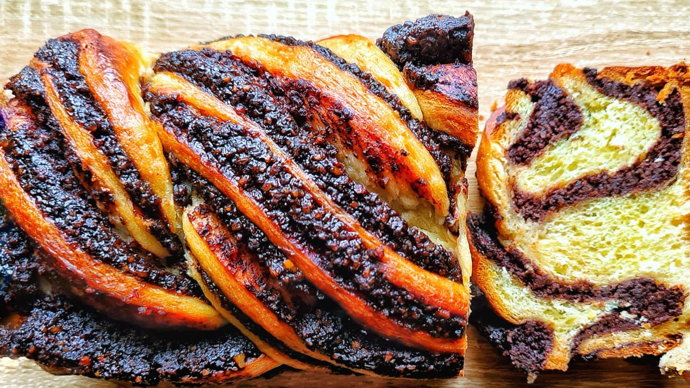 Întinde aluatul, astfel încât să obții două foi mari. Se adaugă umplutura până înspre margini și se rulează aluatul din aproape în aproape. Acum, ia cele două rulouri umplute și rulează-le până când obții două spirale. Se adaugă în tăvi, se crestează cu un cuțit și gata. Cozonacul împleticit este pregătit de copt!